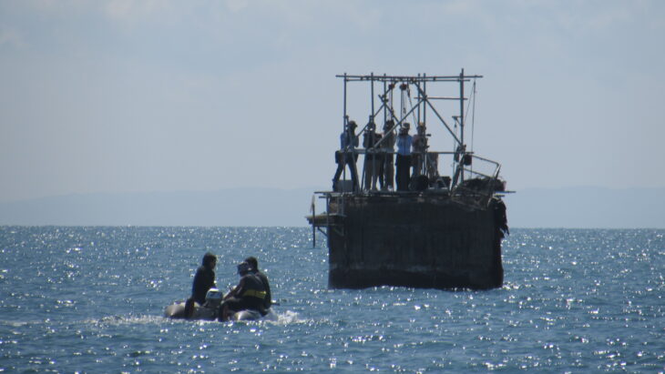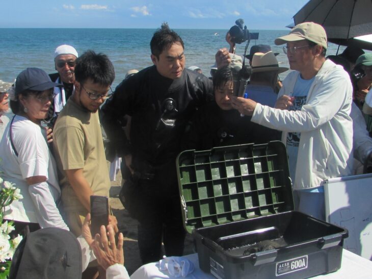 潜水調査を見守った日本人遺族は「祖父は若くして命を落とし悔しかったろう。坑口が見つかってから1年、刻む会や伊左治さんたちの勇気によってこうして遺骨が見つかった」と涙ぐむ。