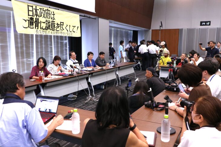 戦時中に水没事故を起こした海底炭鉱「長生炭鉱」(山口県宇部市)の調査活動を行なってきた市民団体「長生炭鉱の水非常を歴史に刻む会(刻む会)」が8月25、26日、犠牲者のものと見られる人骨を収容したことを受け、超党派の国会議員らと共に、今月9日、参院議員会館で日本政府側と交渉した。
