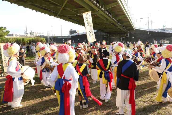 追悼式の後、プンムル(朝鮮の農楽に由来する伝統芸能)が行なわれ、民族衣装に身を包んだ50人以上が太鼓と鐘を打ち鳴らしながら会場を練り歩いた。参加者も飛び入りで踊り、生のよろこびを分かち合っているようだった。