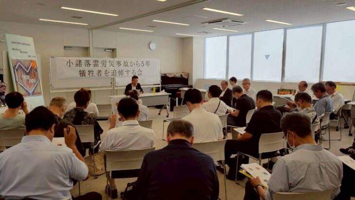 事故発生から5年目となる8月23日、同市交流センターで「小諸落雷労災事故から5年 犠牲者を追悼する会」が開催され、40人が参加。犠牲者を追悼するとともに、同様の事故の再発防止と外国人との共生社会実現を誓い合った。前日には落雷事故が発生した畑に有志で出向き、献花と黙とうを捧げた。
