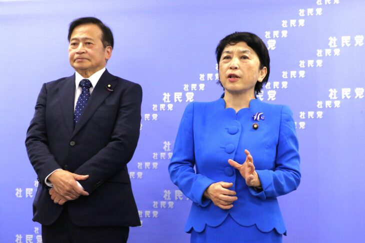 また、福島党首は高市政権について「今年は高市政権を退陣に追い込む年にしよう。高市内閣発足時、私は『戦争準備内閣』と名付けた。大軍拡と非核三原則の見直し、武器輸出が進むなど、憲法を踏みにじっている」と批判し、「『働けど働けど…じっと手を見る』と石川啄木がよんだように新自由主義により賃金が下がり、生活が苦しくなっている。また、医療や介護の削減を進めようとしているが、今月から始まる通常国会で、それをさせないために頑張っていきたい」と訴えた。そして最後に、「憲法が揺らぐ時こそ社民党の出番であり、総選挙がいつあっても対応できるようにしたい」と決意を述べた。