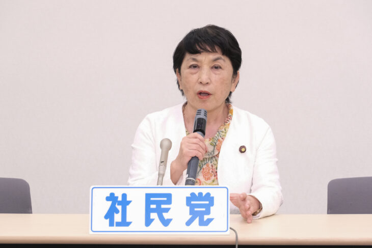 社民党の福島みずほ党首は12月3日、参院議員会館で会見を行ない、議員定数削減や防衛費増、選択的夫婦別姓などについて語った。自民党と日本維新の会が、衆院議員定数削減法案(5日に提出)で小選挙区25議席、比例代表で20議席の計45議席を削減し、今後の協議で1年以内に結論が出なかった場合、自動的に削減するとしたことについて、福島党首は「日本の国会議員数はG7の中でも2番目に少ない。削減すれば多様な民意を切り捨てることになる」と批判。「特に比例削減は少数政党つぶしだ」として、社民党として強く反対する姿勢を示した。