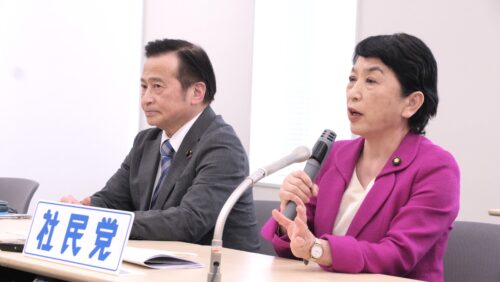 【19日の福島みずほ党首とラサール副党首の会見】新垣衆院議員の離党問題で「沖縄社民党を立て直し、一緒に頑張りたい」~ 党勢拡大の「リブート」を