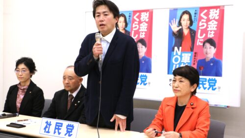 衆院選東京ブロック比例予定候補の桜井夏来さんが会見で新たな格差の拡大に危機感を語る~福島党首が軍事優先の予算案を厳しく批判