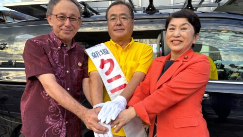 【衆院選公示日】福島党首が沖縄で新垣クニオ候補と第一声~改憲と戦争への道を止める